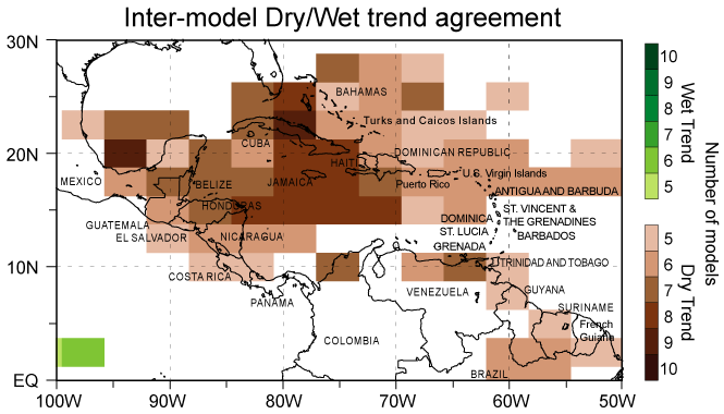 Carribean precipitation change from an ensemble of ten models |